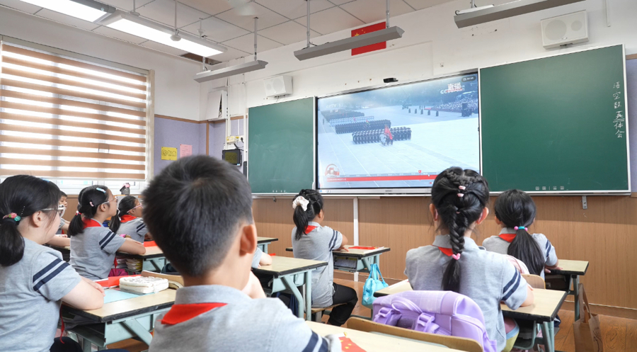 上海适存小学组织全校师生集体观看直播,为爱国主义教育筑牢根基。当徒步方队迈着整齐划一的步伐前行,当装备方队载着国之重器震撼亮相,孩子们眼中充满自豪与敬畏。