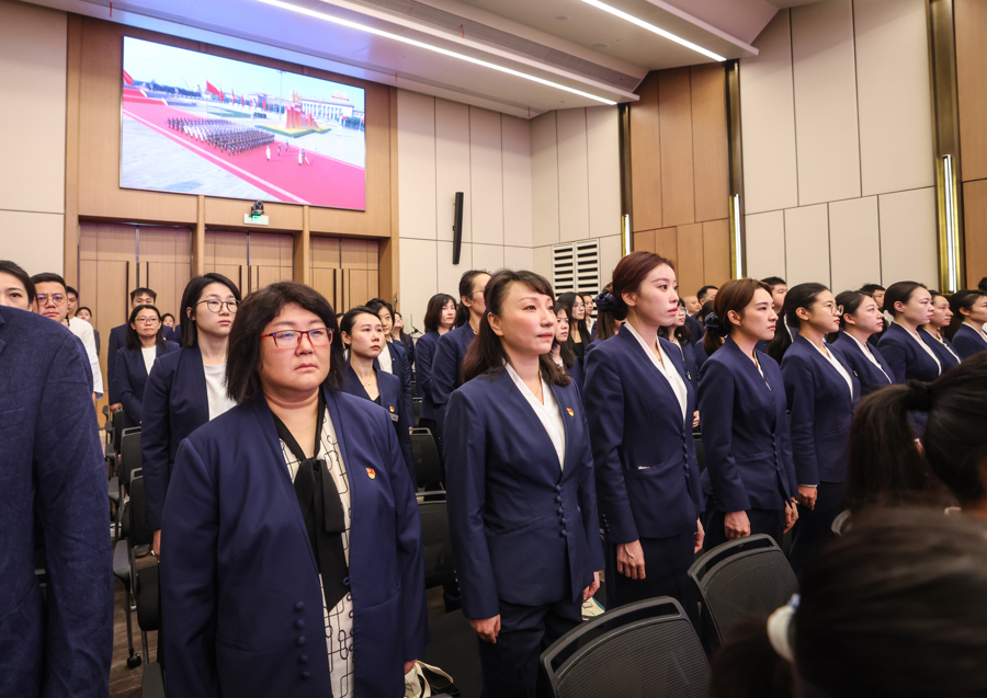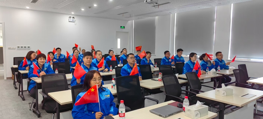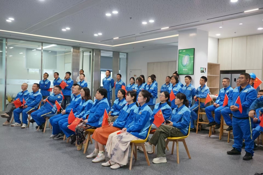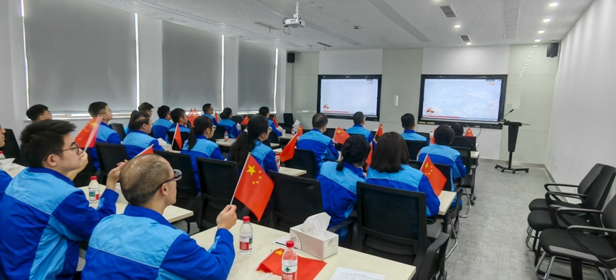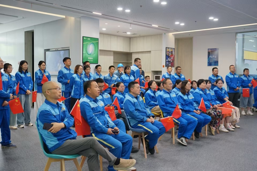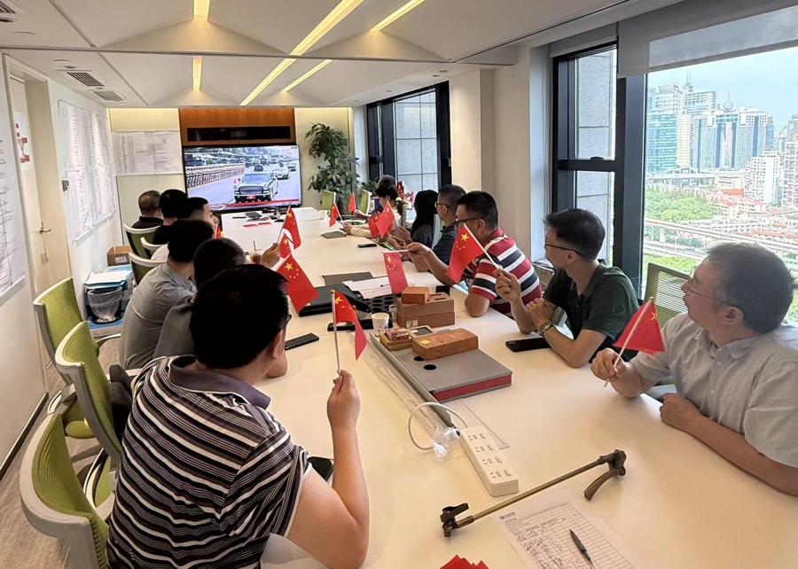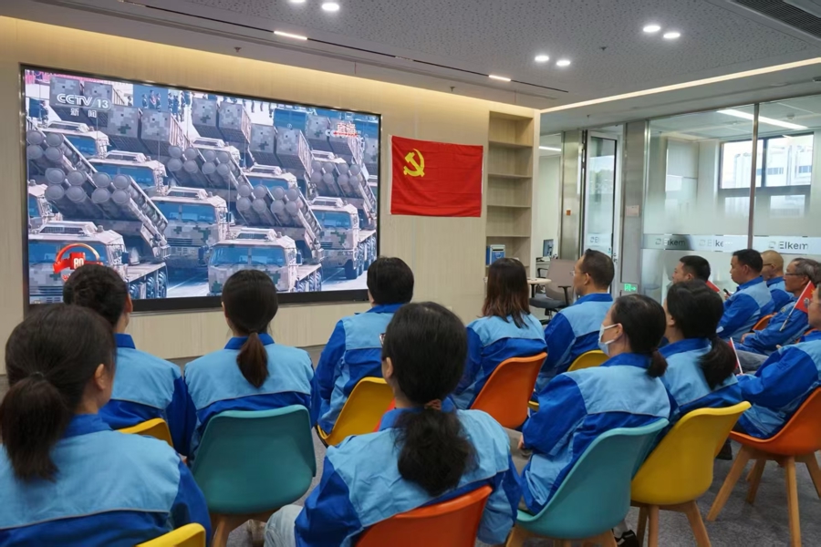 9月3日上午,中化蓝星埃肯有机硅(上海)公司组织员工集中收看纪念中国人民抗日战争暨世界反法西斯战争胜利80周年大会电视直播,共同见证阅兵盛况。阅兵仪式结束后,现场响起了热烈掌声。