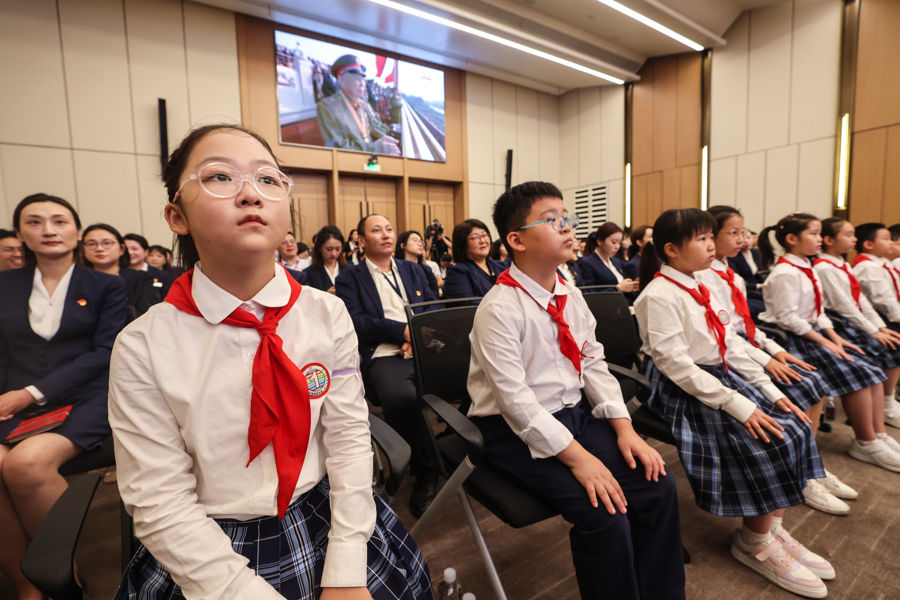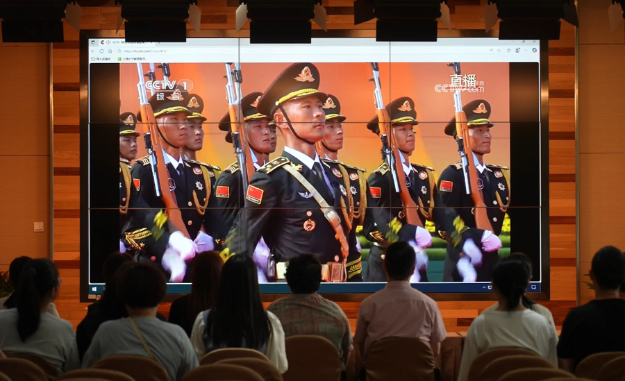 在上海,党员群众通过多种形式收看阅兵仪式。从红色场馆到学校,从企事业单位到基层群众,这座城市以各种方式见证历史时刻。