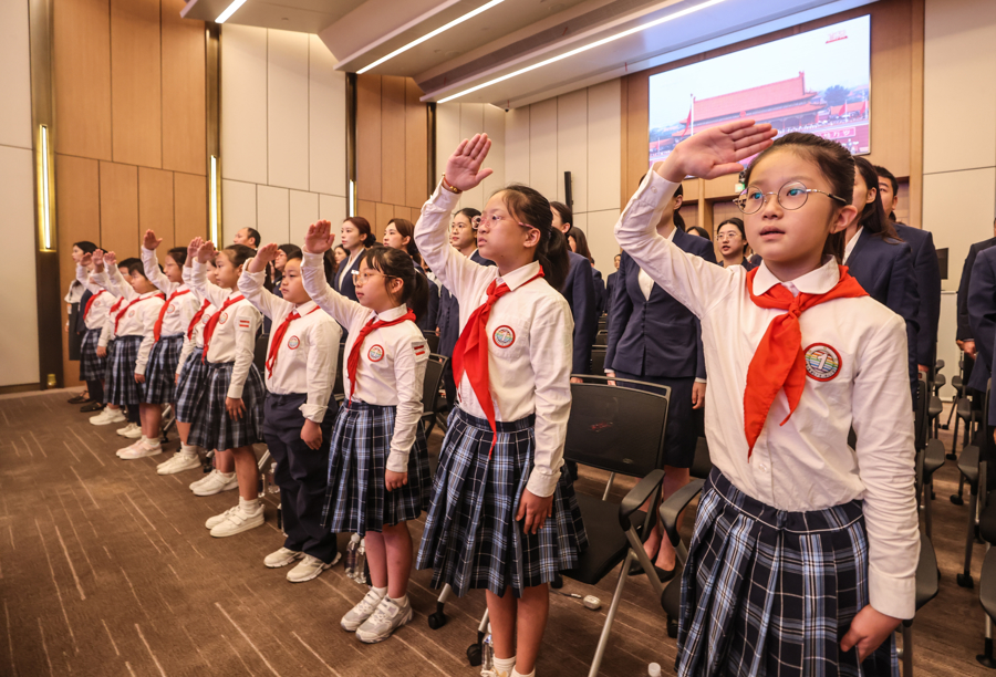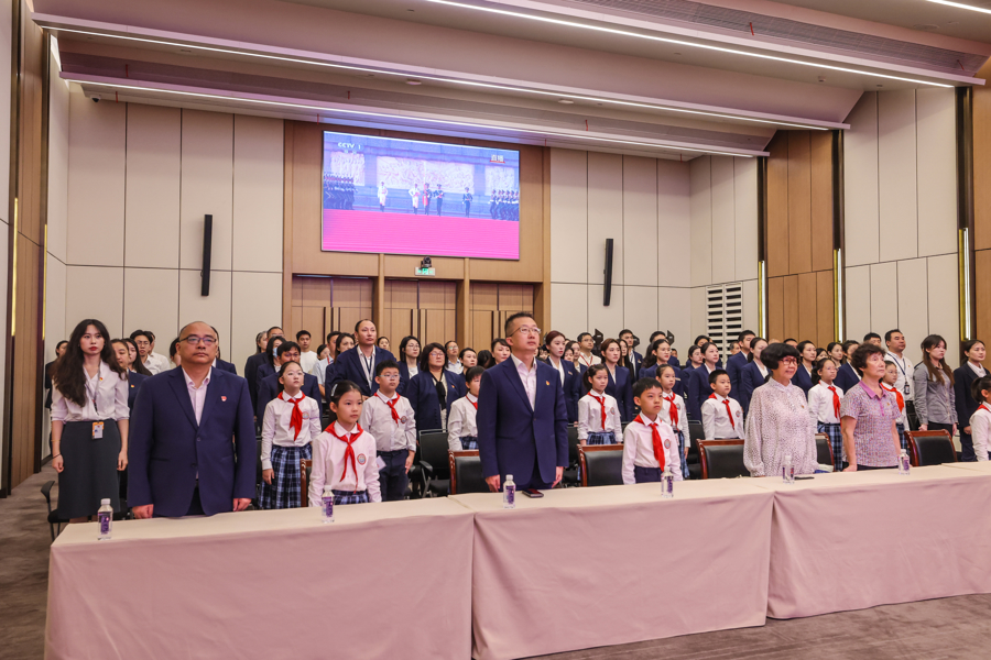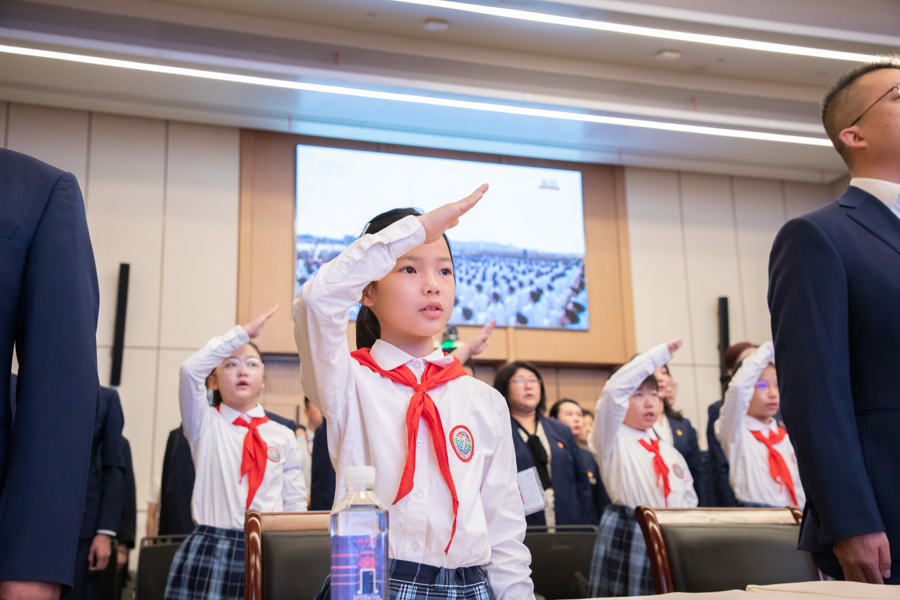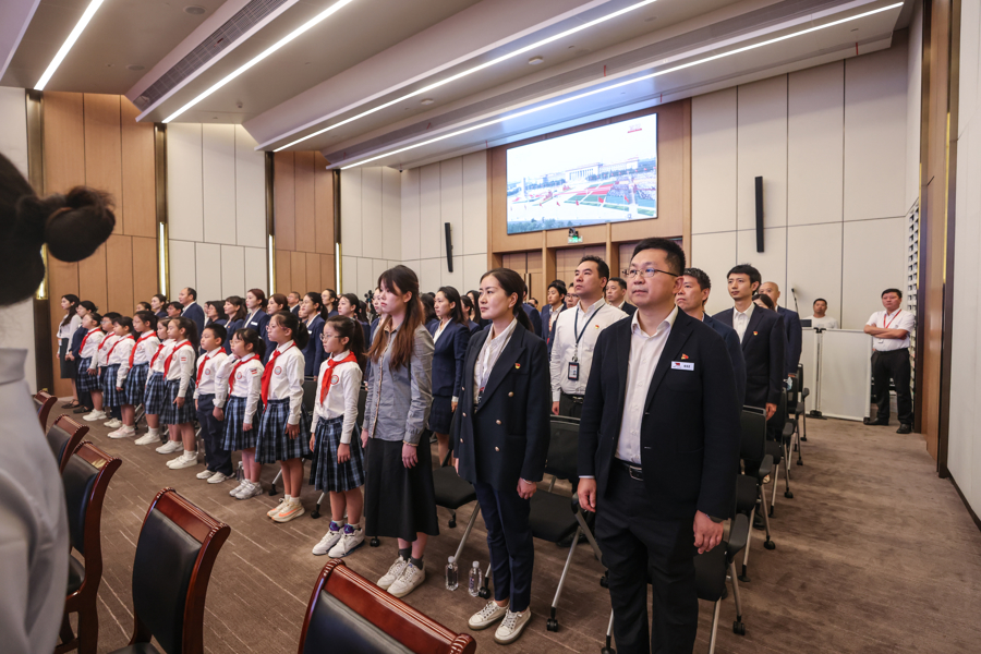 当天上午,在中共一大纪念馆报告厅,全体员工集体收听收看纪念大会,大家精神振奋、心潮澎湃。馆方还邀请上海市黄浦区卢湾一中心小学的“红喇叭”小小讲解员们一同观看。