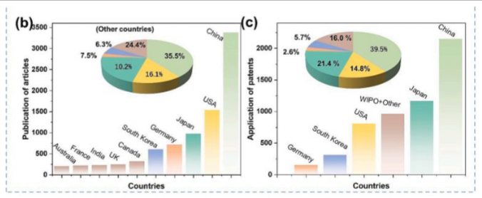 各国固态电池论文及专利数量占比